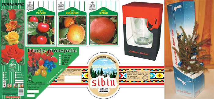 Etichete adezive / Ambalaje din carton / Cutii / Pungi de hartie / Pungi de plastic / Legatorie / Cartoane de produs ambalat / Coperti de CD-uri |